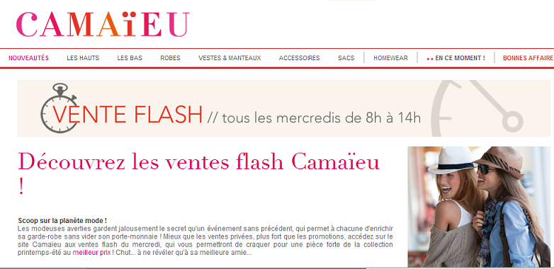 Tout les mercredis vente flash sur le site camaïeu.fr